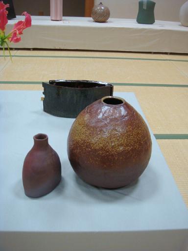 焼き締めの備前風の花器も素朴な感じで私は気にいっています。