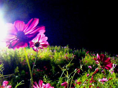 満濃公園のコスモスライトアップを見に行きました。